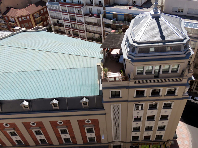 TORRES: la de la izquierda es la de la iglesia de S. Marcelo; la del fondo , es la Torre del gallo, de la Colegiata de S. Isidoro (una joya del románico, sobre todo, sus pinturas del panteón). |